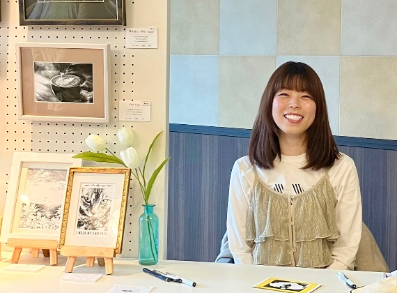 製図や精密画用のペン(ミリペン・グラフィックペン)を用いて、独学で点描画を制作。